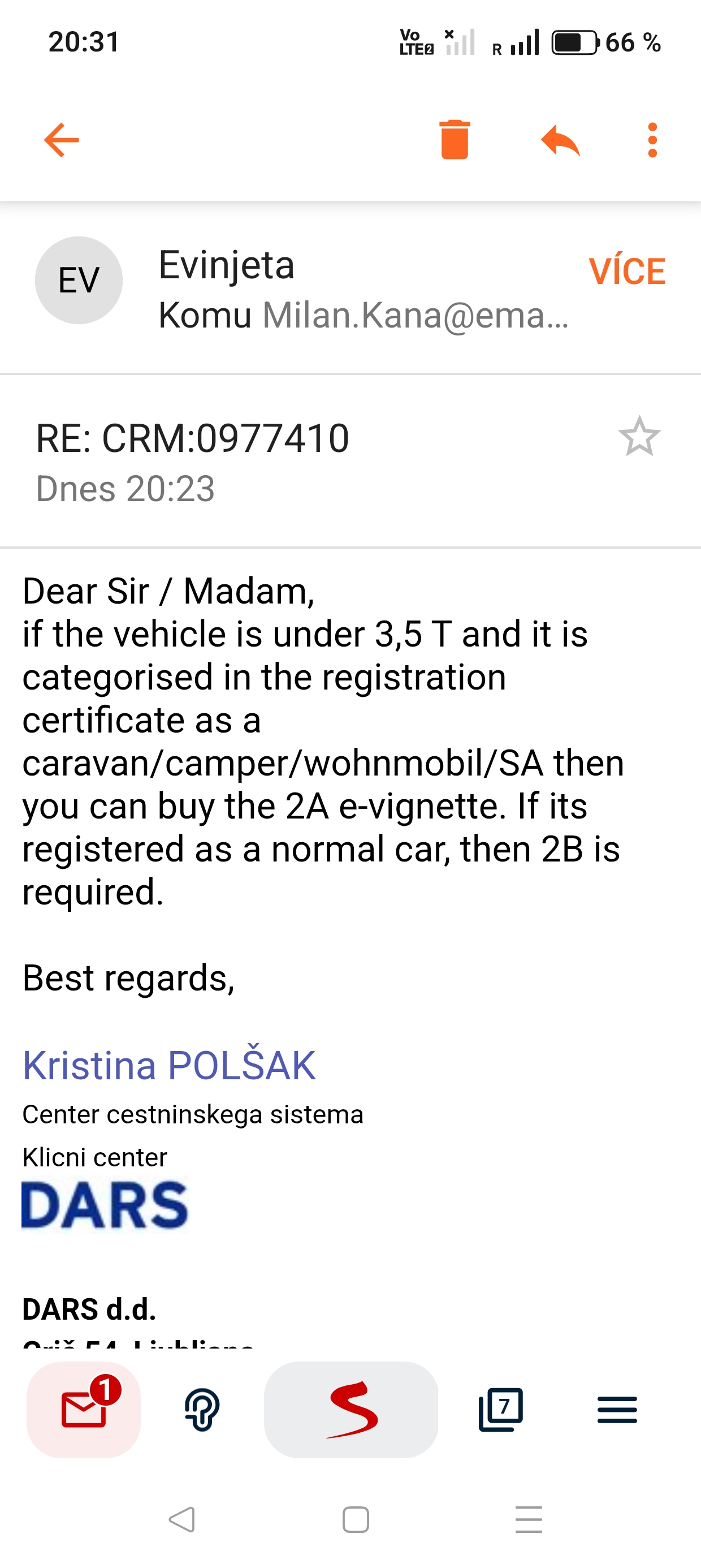 Dobrý den jaká dálniční známka se platí ve Slovinsku? Obytné auto polointegrovane.vyska 2.80 Posledních 6,let jsem kupoval 2A ale teď si nejsem jistý.