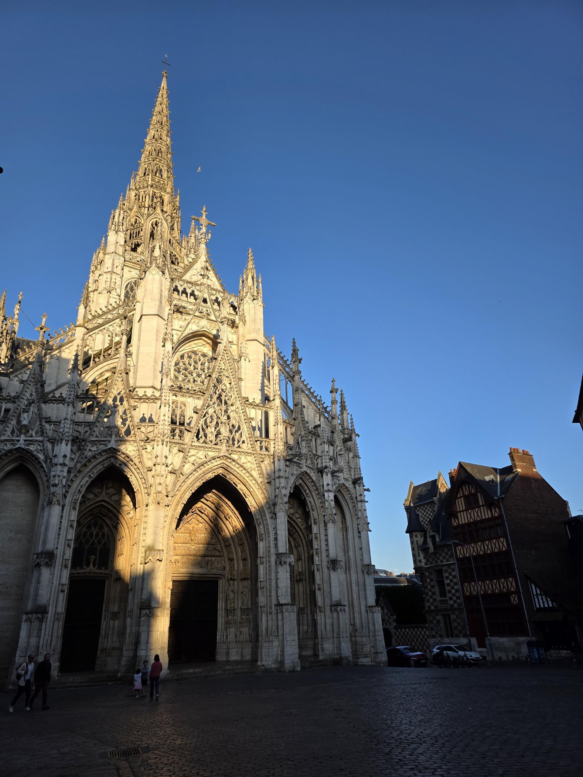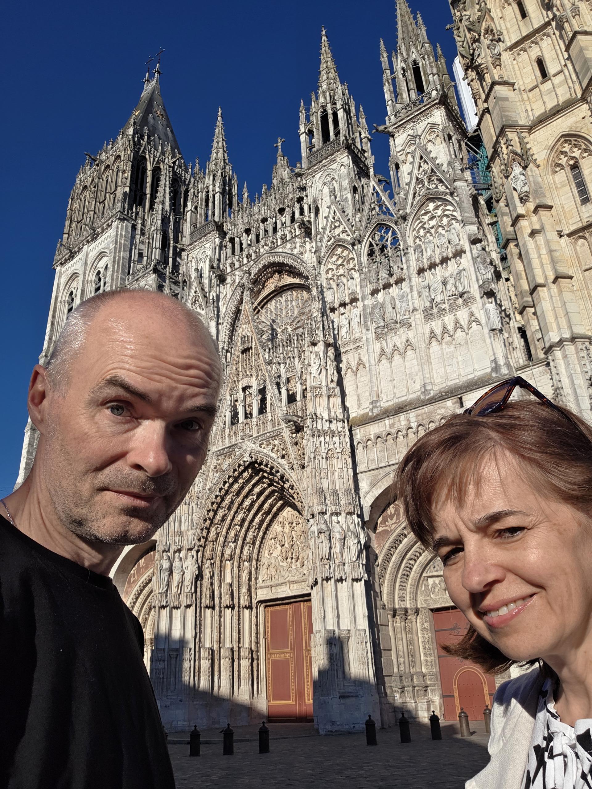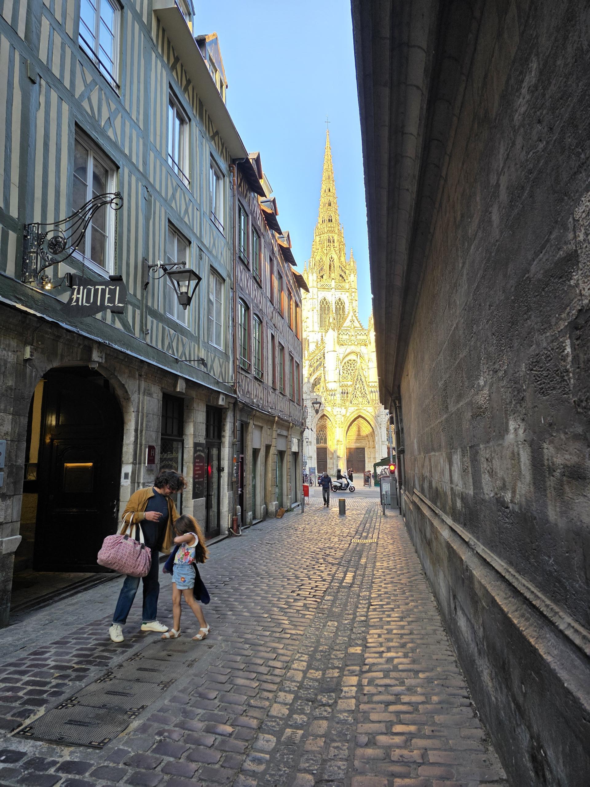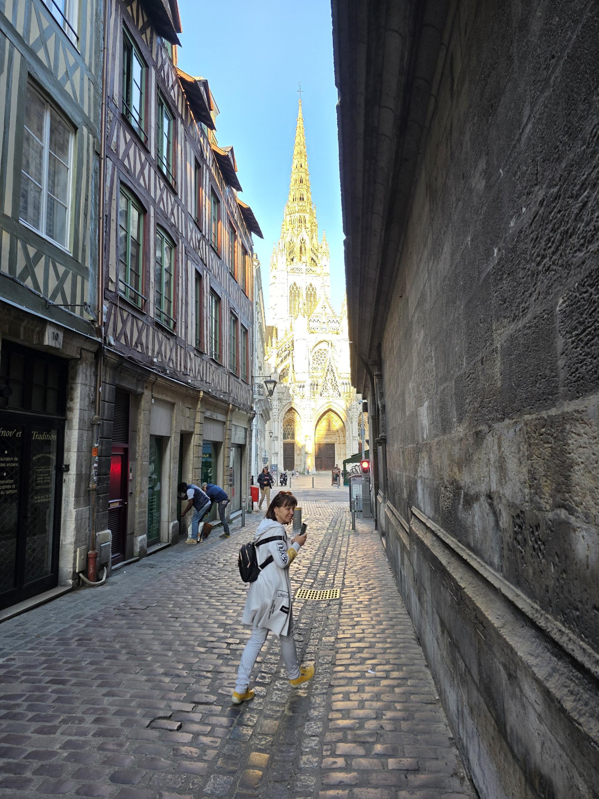 Église catholique Saint-Maclou à Rouen Le Bûcher de Jeanne d'ArcV kavárně Ulička nás okamžitě zaujala. Tak jsme jí prošli. Catholic Church of St Joan of Arc