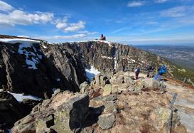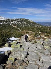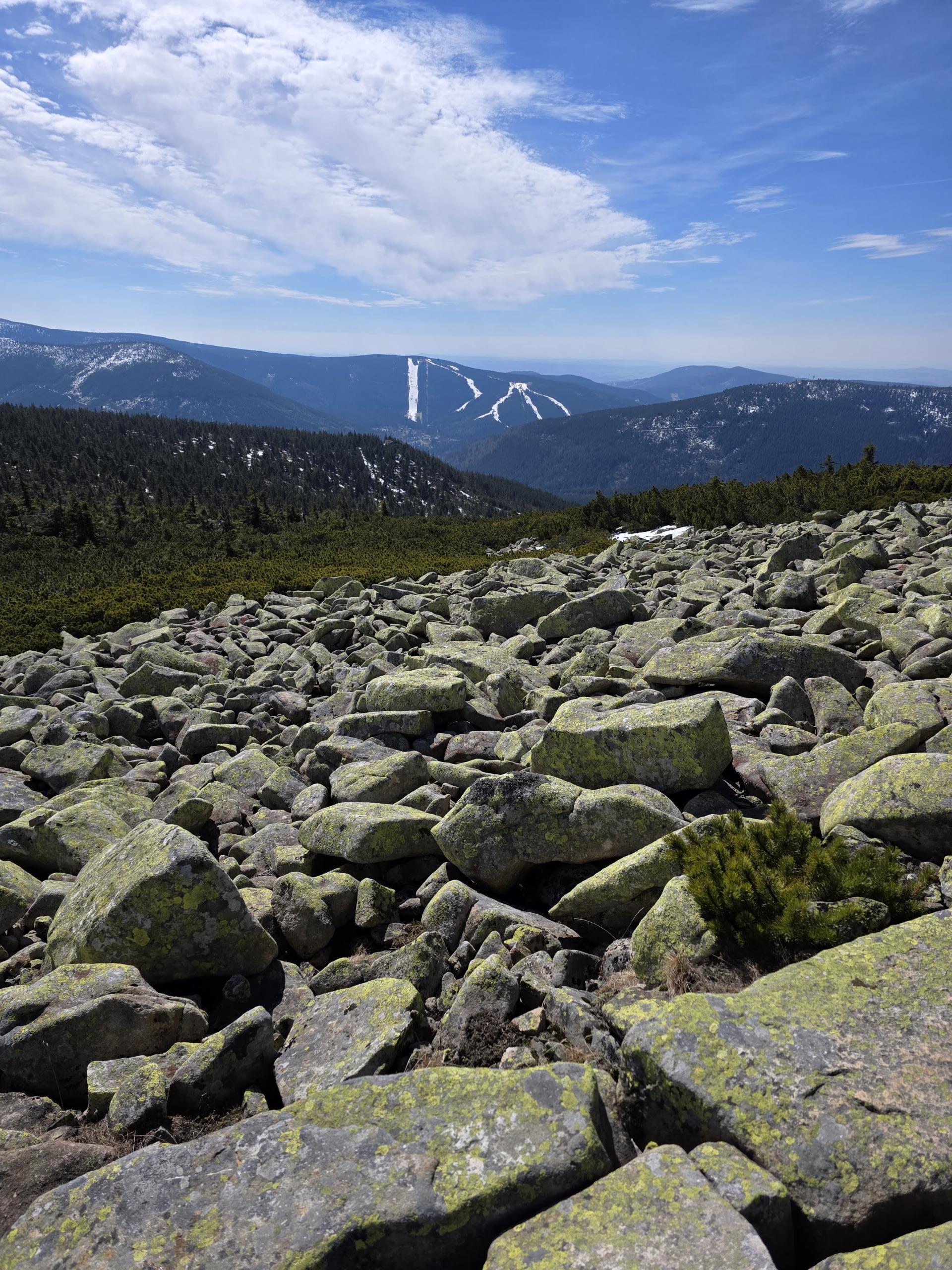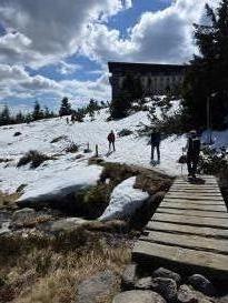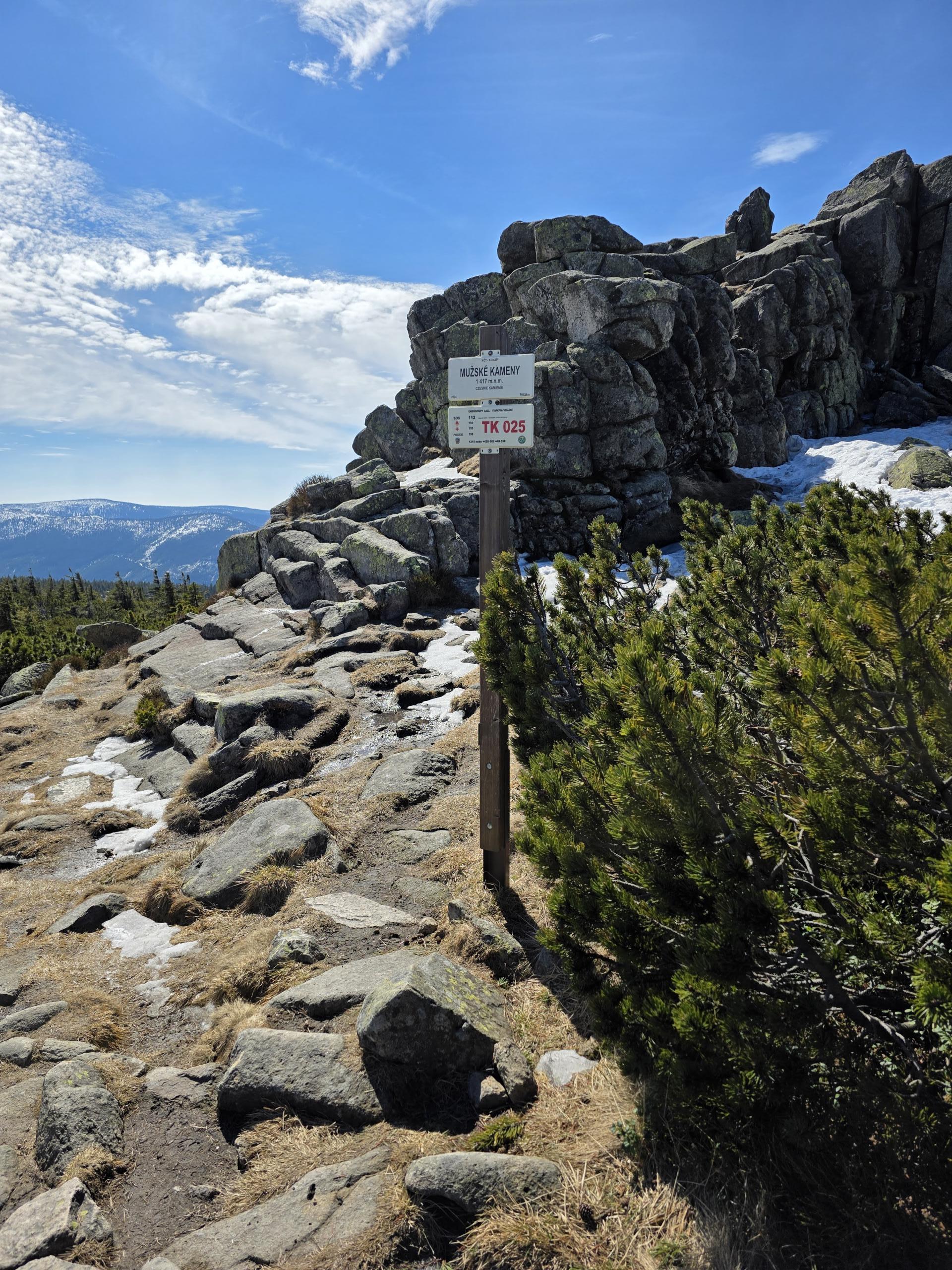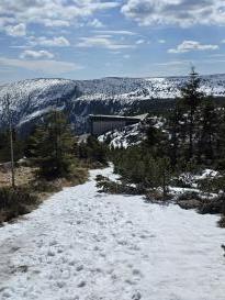 Parkoviště Špindlerovka Pohled od Útulny Petrovy Boudy na Špindlerovu Boudu Dívčí kameny Zdaleka ne jediné místo ještě pod sněhem. Mužské kameny Vysílač Sněžné jámy Čeká na nás polévka a krátký odpočinek. Labský vodopád kameny nebo sníh, dost záběr na nohy Děvět sil bílý Místo pro čůrání, a nebo ne?