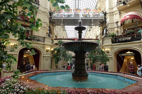 Potom obchodný dom GUM, je to svojho druhu najväčší na svete, tie najluxusnejšie predajne, ceny už iný level. Vonku nás chytila búrka, tak späť a tak sme boli nútení stráviť hodinu v obchoďáku. Na mňa nezvykle veľa, ale skrátili sme si ju jedlom a popíjaním červeného.