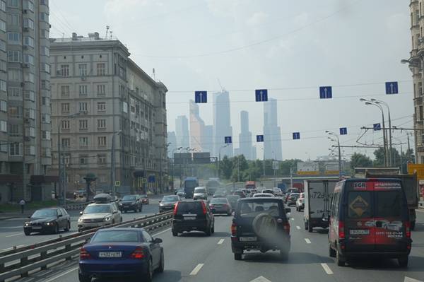 Potom už smer západ cez Moskvu, nebolo to jednoduché. Prepracovanie sa na obchvat, síce päť prúdov, ale slimačie tempo, občas stáť, išli sme to tri hodky . Aj nová výstavba, mrakodrapy, na kraji už nové, moderné sídliská, síce strašne ďaleko, ale ak tam majú metro tak sa dá.