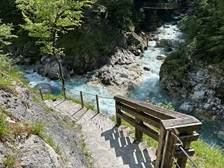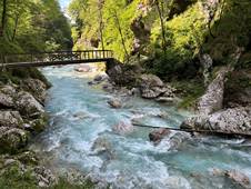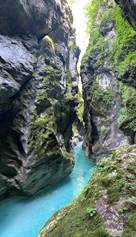 S nadšením procházíme všechna dostupná zákoutí soutěsky, kdy zpáteční cesta vede přes most s výhledem dolů do ní. Spokojení a plni krásného zážitku pokračujeme dál na jih, podél řeky Soča s neskutečnou barvou vody.