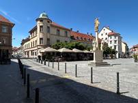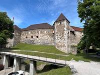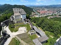 Parkujeme 46.4152, 15.8688 Jdeme na prohlídku historické části města a jsme nadšeni. Nad městem je dominantní hrad, ze kterého je výhled na celé město.