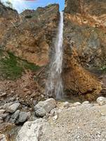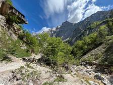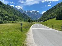Další krásné místo je Logarská dolina, 46.4195911N, 14.6458789E která je po asi 10km zakončená vodopádem Rinka. Silnice dolinou je zpoplatněná mýtem (pro auta), ale my jedem na kole. Je dost horko, ale na kole se to dá.