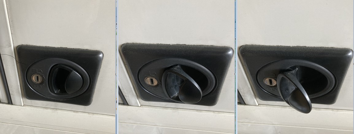 Úpravu jsem provedl na spodním zámku, otevřu jej do třetí "stabilní" polohy a pak mi stačí jedna ruka na otevření horního zámku.
