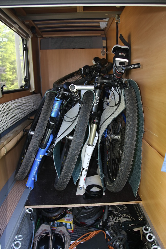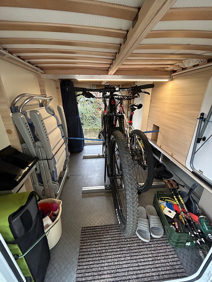 Ahoj, asi je důležité, jak velkou máš garáž. Já v novém autě mám prostoru hodně, a tak jsem vzal dva staré nosiče na střechu a přidělal je ke hliníkovému nosníku. Kola nemusím nijak demontovat, prostě je připevním do držáků a na jízdu provážu kurtou, aby se nekývaly při brždění. zatím vše funguje prima.